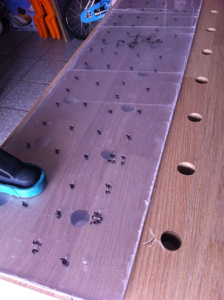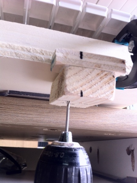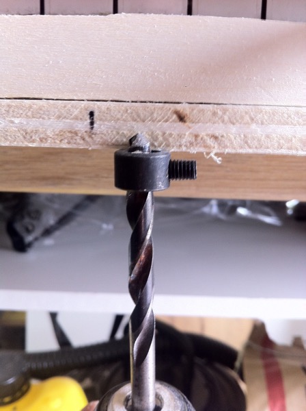 A little jig to drill pilot-holes right at 5 mm from the border of the plywood