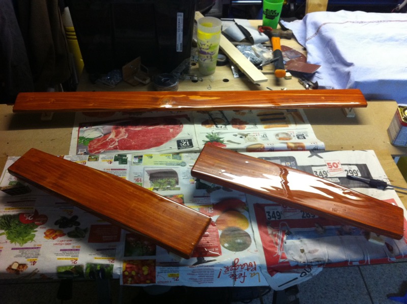 The three spruce boards after the final coat of varnish.5.3. Plywood frame