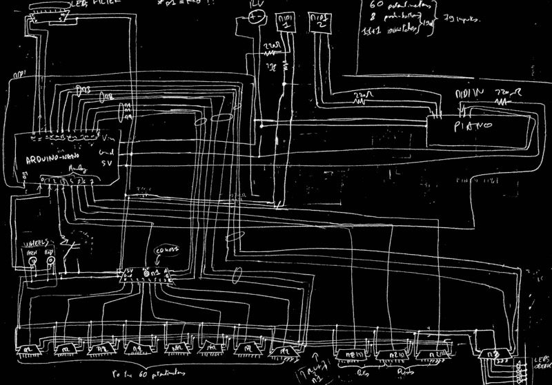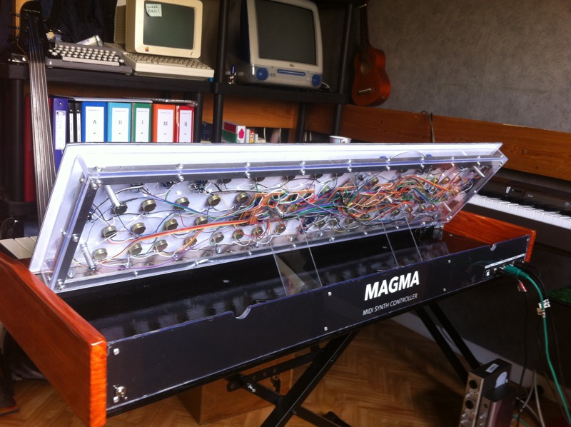- When I will receive my Teensy 3.2 board (a more advanced, powerful and faster version of an Arduino), I'll try to make a USB class-compliant MIDI output. If it works, it'll mean that I could connect the whole MAGMA just in a USB port of the MacBook Pro, which will be muuuuuch easier and faster to plug on stage. Possibly even more secure (I work on 10yo sound interfaces...).