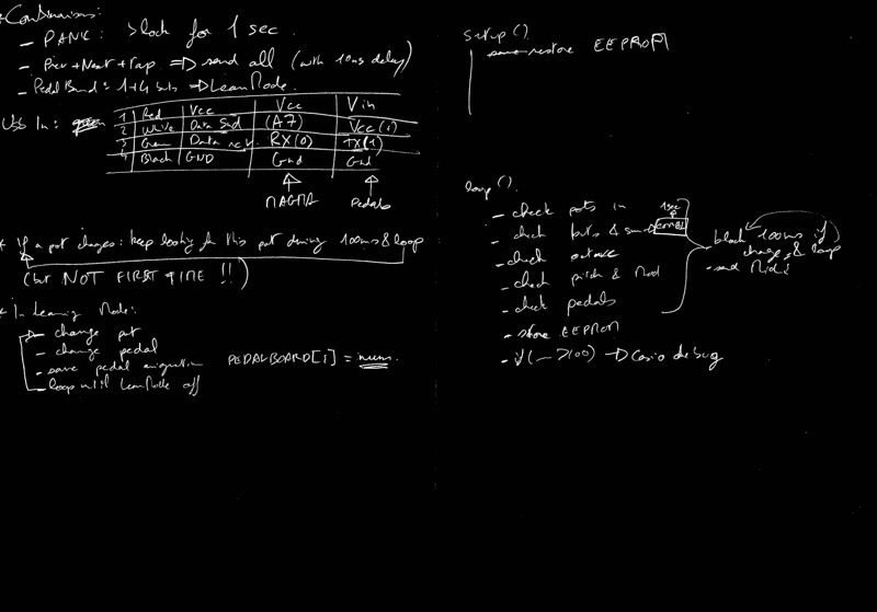 - As I mentioned somewhere, I have a MIDI PedalBoard built on the same principle, but much simpler. It was kind of a prototype of the MAGMA. The thing is that Arduino boards are capable of communicating, via Serial messages. Which means that I could plug this PedalBoard into the Magma to controls some pots or buttons. I never had so much utility to do that, but the USB port to receive the PedalBoard in built in the MAGMA back panel. Could be fun sometime.