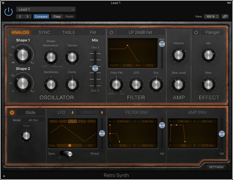 View of the nice 'Retro Synth' in MainStage3.2. Main control panel